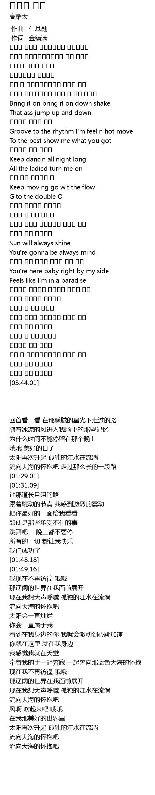 | [00:01.00] | 作词 : 金镇满 |