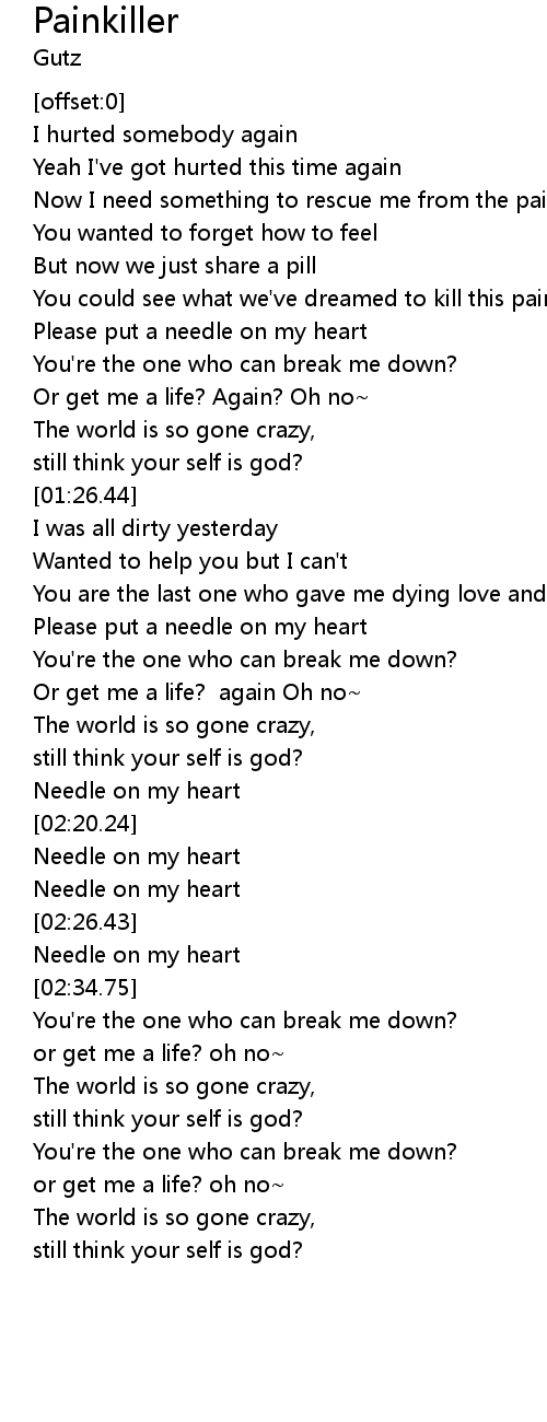 | [00:35.45] | Now I need something to rescue me from the pain |