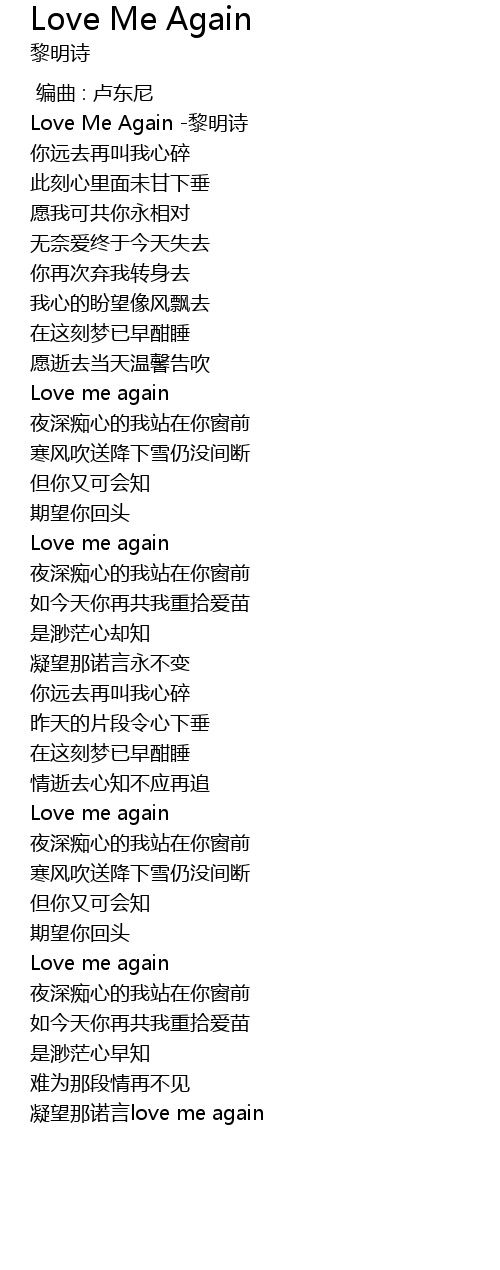| [03:44.480] | níng wàng nà nuò yán love me again |