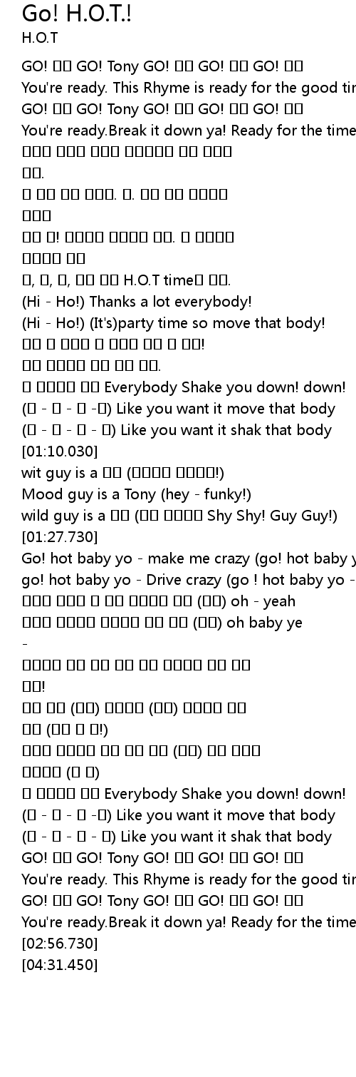 | [00:36.950] | , , , H. O. T time . |
