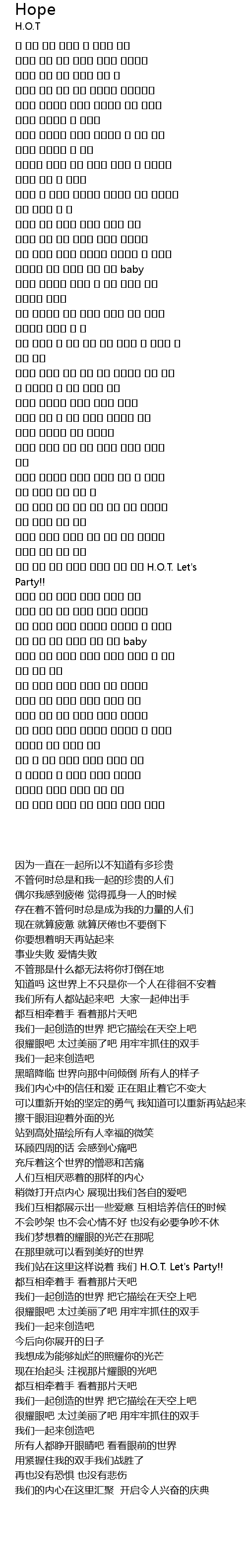 우린 여기 서서 이렇게 말하고 있어 우린 H.O.T. Let's Party!! |