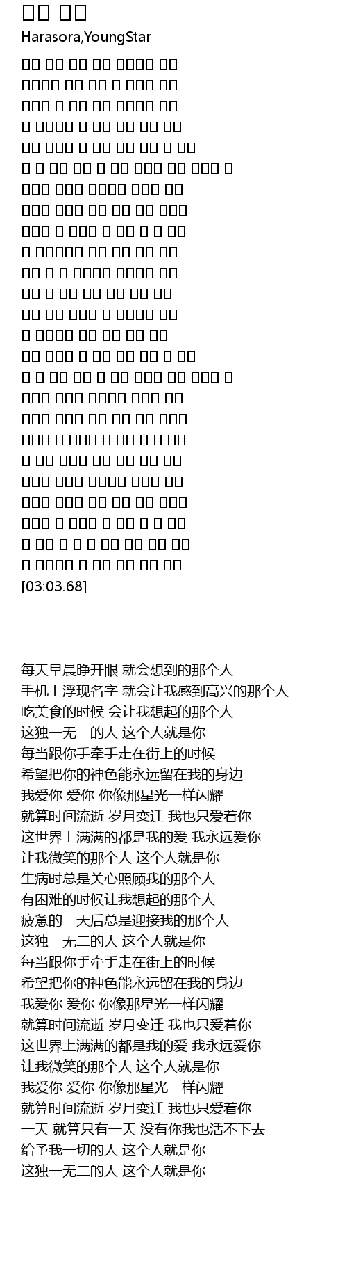 | [01:36.64] | 단 하나뿐인 사람 그게 바로 너야 |