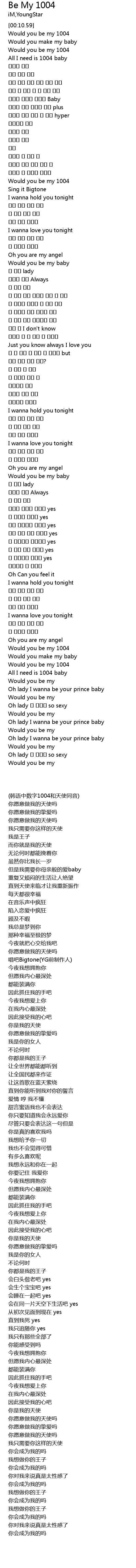 | [00:20.86] | Would you be my 1004 |