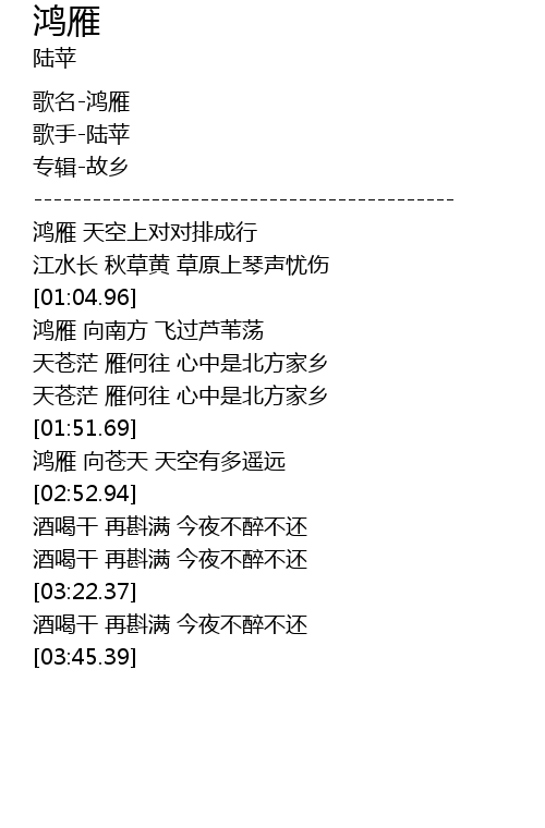 | [00:00.45] | 歌名-鸿雁 |
