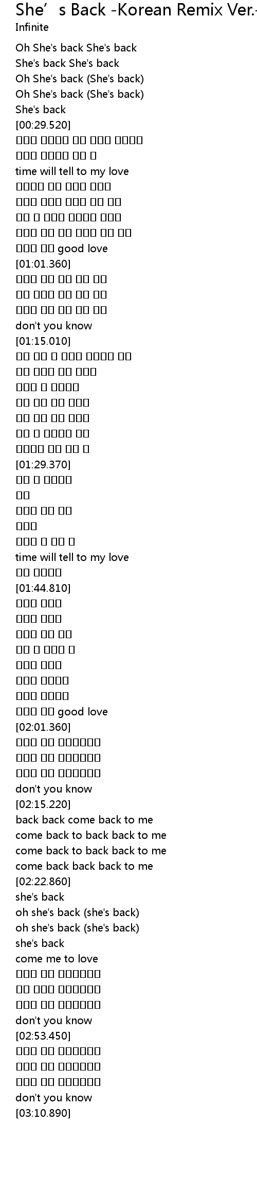 | Song | She’s Back -Korean Remix Ver.- |