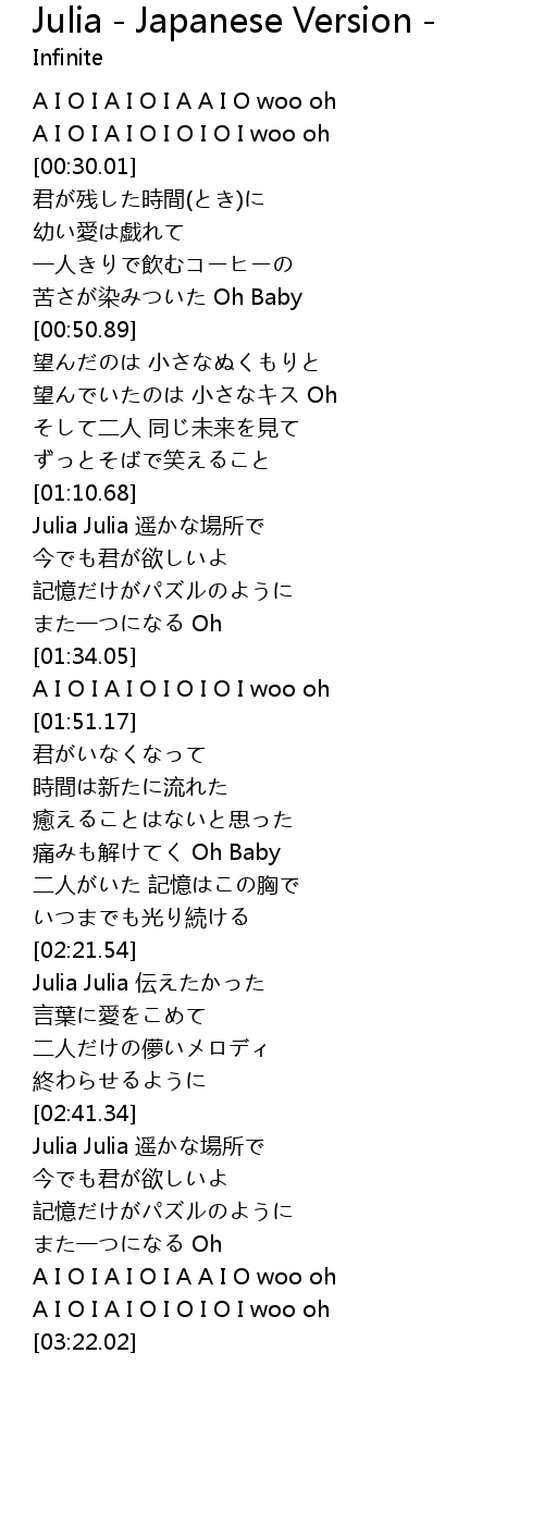 | [02:22.04] | Julia Julia 伝えたかった |