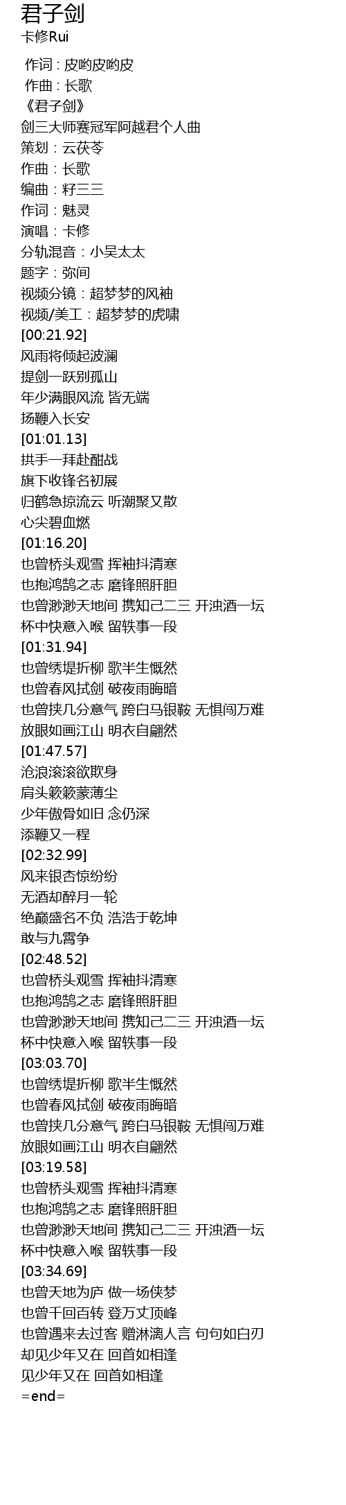 | [00:02.20] | 剑三大师赛冠军阿越君个人曲 |