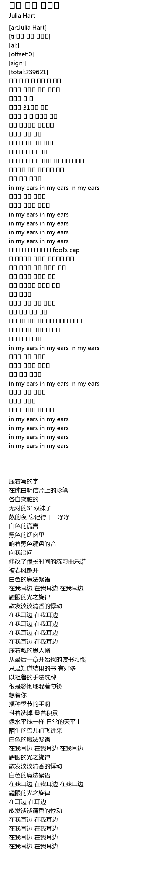 | [01:09.00] | 귓가엔 향긋한 설레임 |