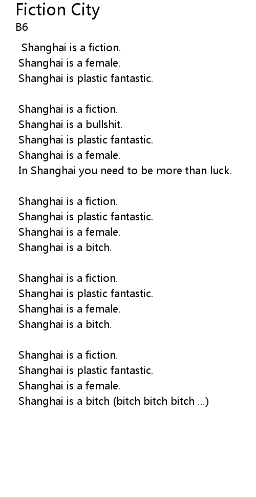 | Shanghai is a bitch (bitch bitch bitch ...) |