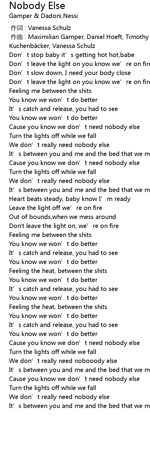 | [00:48.42] | Cause you know we don' t need nobody else |
