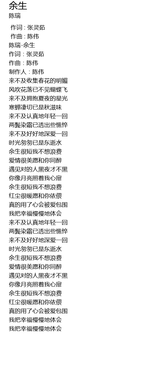 | [03:38.525] | yu sheng hen duan wo bu xiang lang fei |
