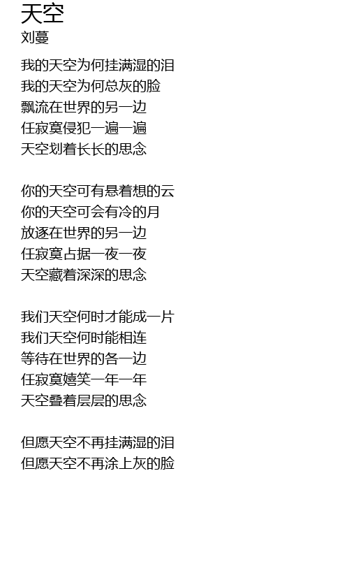 | 但愿天空不再挂满湿的泪 | |