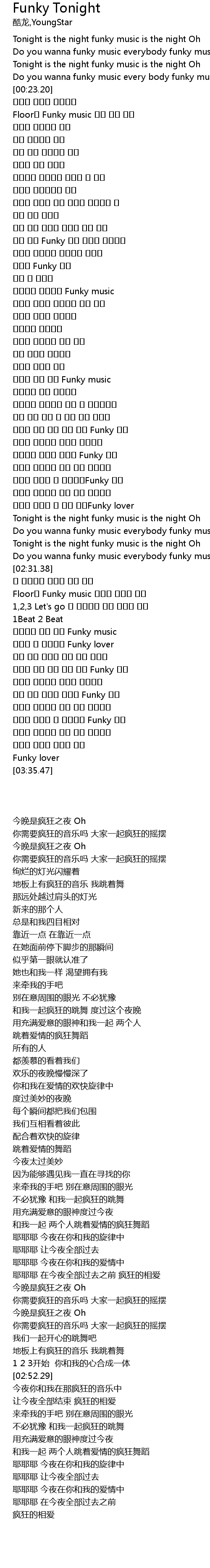 | [02:22.22] | Tonight is the night funky music is the night Oh |