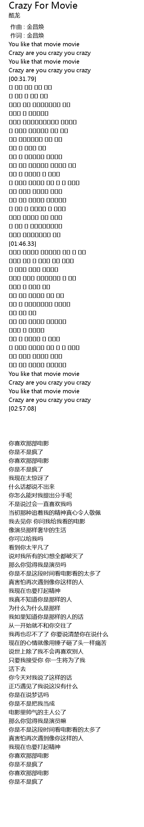| [00:01.00] | 作词 : 金昌焕 |