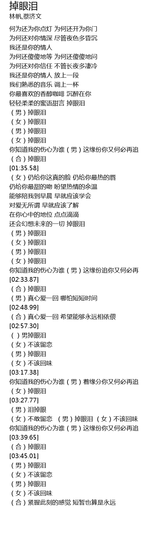 | [03:40.52] | (合)掉眼泪 |