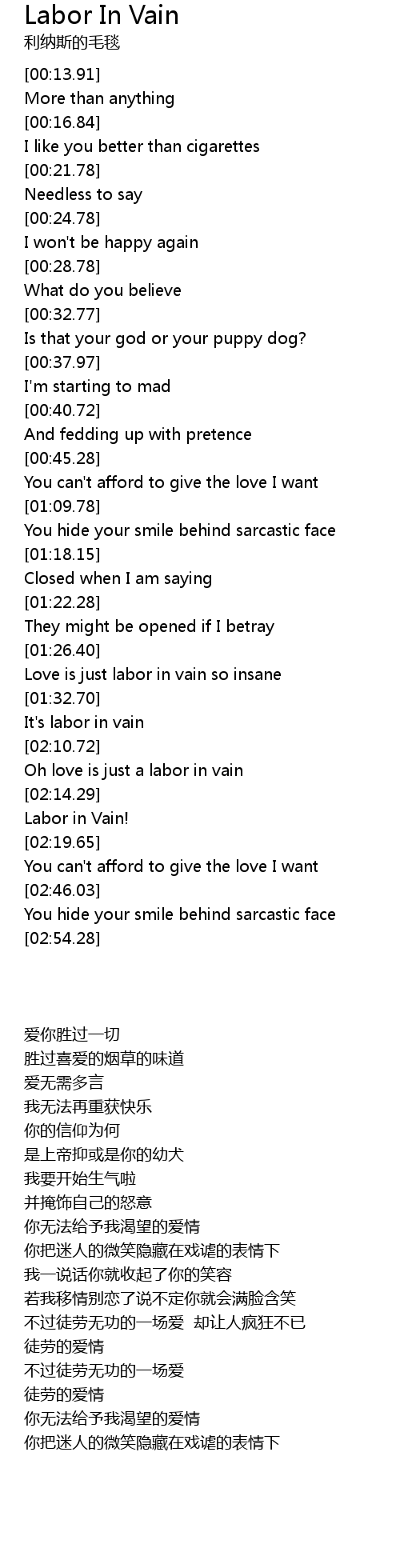Oh love is just a labor in vain |