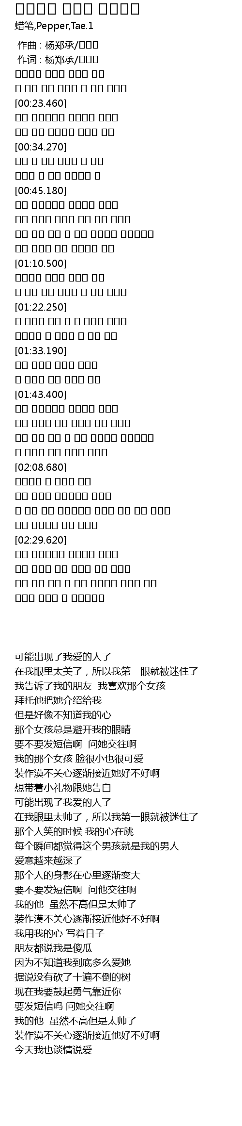 | [00:01.00] | 作词 : 杨郑承/김종천 |
