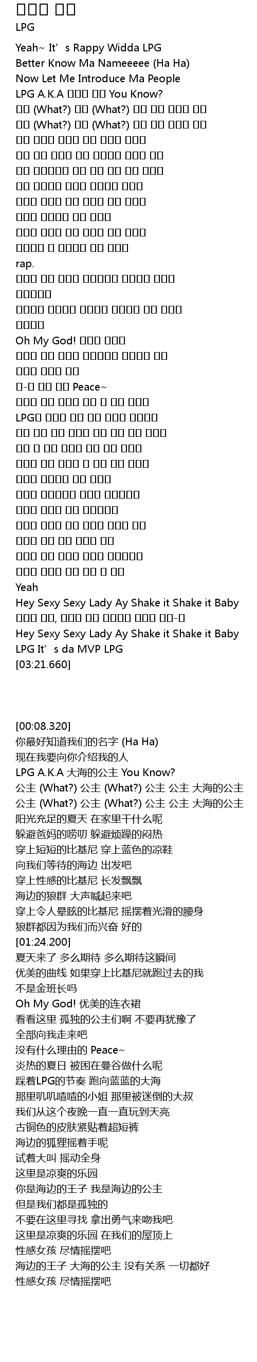 | [00:16.140] | LPG A.K.A 바다의 공주 You Know? |