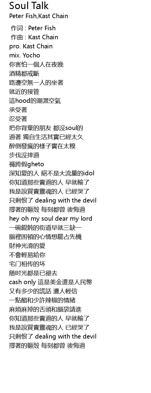 | [00:33.457] | 把你背棄的朋友 都沒soul的 |