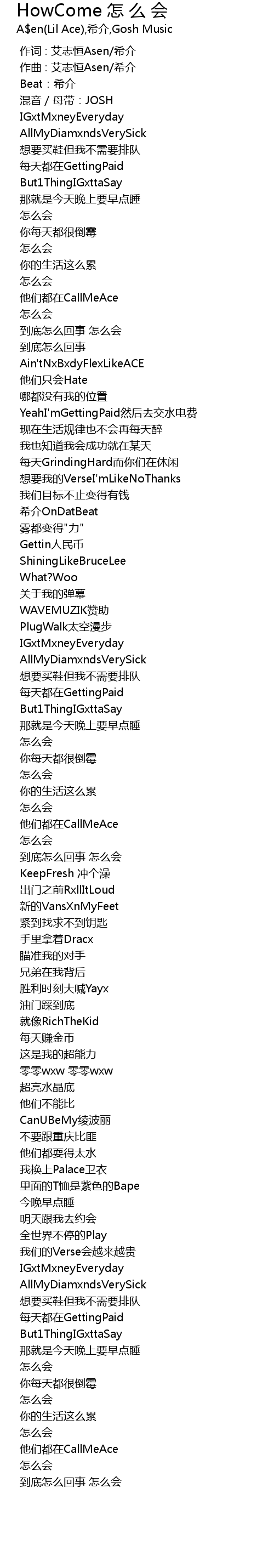| Song | HowCome 怎 么 会 |