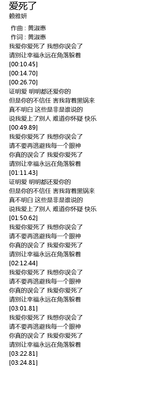 | [02:51.93] | 你真的误会了 我爱你爱死了 |
