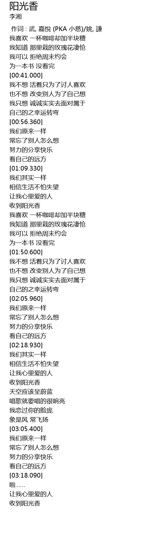 | [02:30.560] | 收到阳光香 |
