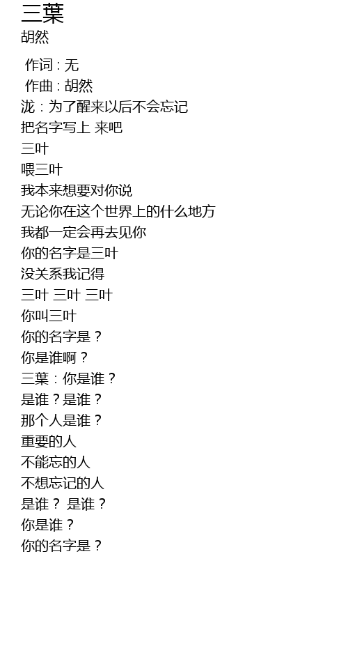 | [02:45.090] | sān yè: nǐ shì shuí? |
