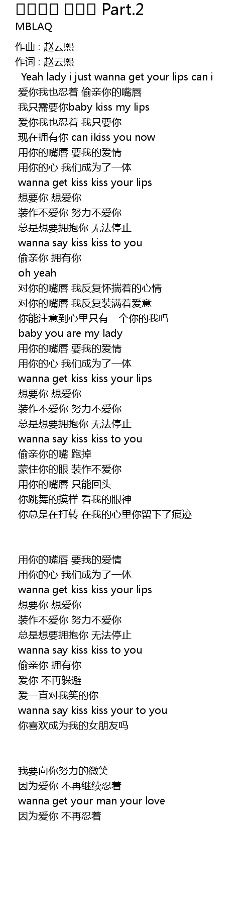 | wǒ zhǐ xū yào nǐ baby kiss my lips | |