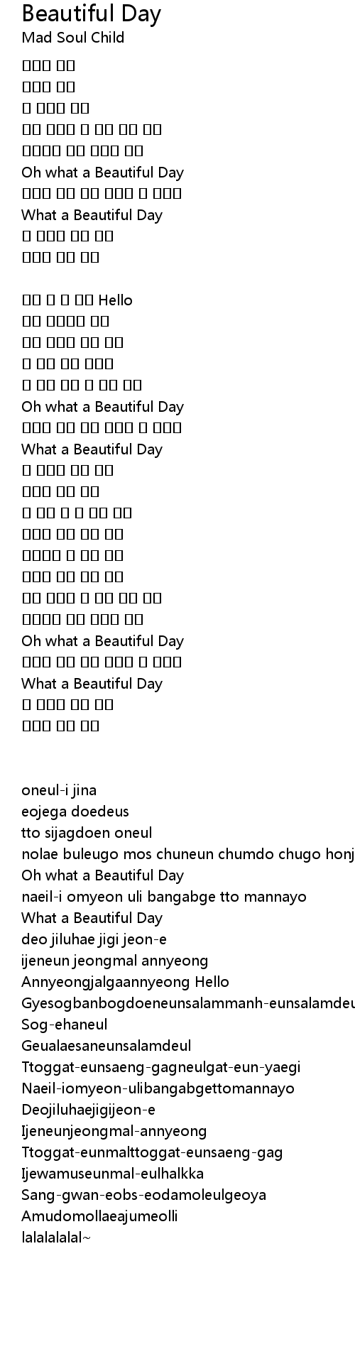 | Song | Beautiful Day |