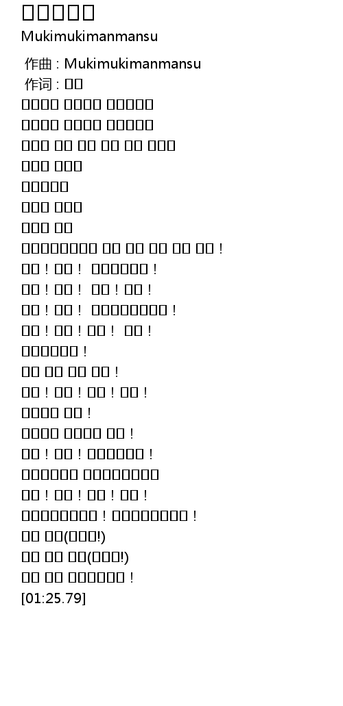 | [00:00.00] | zuo qu : Mukimukimanmansu |