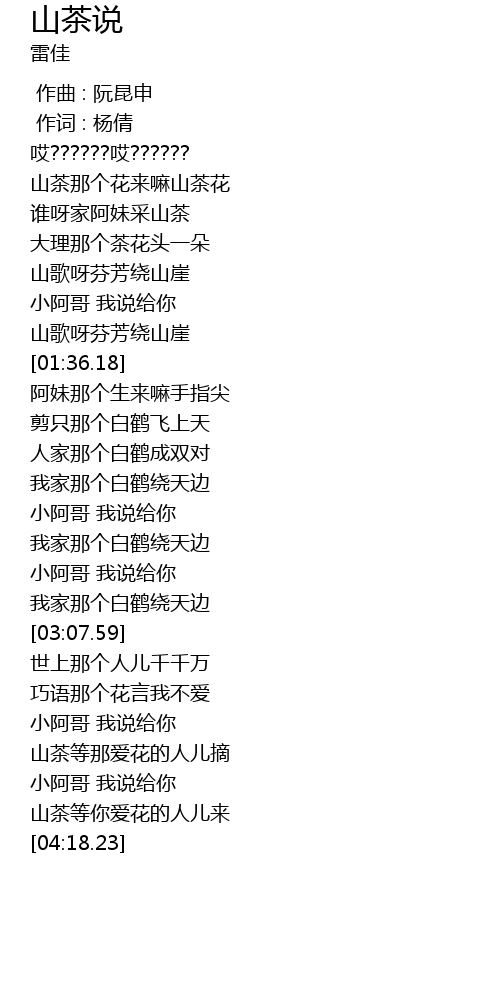 | [00:41.12] | 山茶那个花来嘛山茶花 |