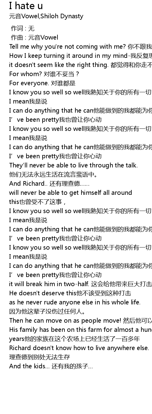 | [00:04.248] | Tell me why you' re not coming with me? nǐ bù gēn wǒ zǒu, duì bú duì? |