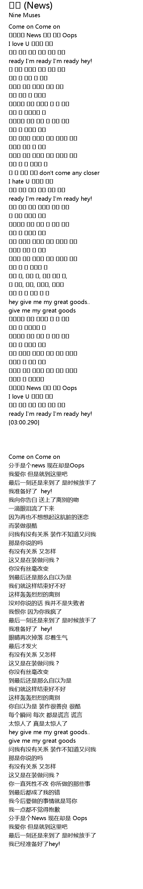 | [02:44.870] | 헤어지잔 News 이제 와서 Oops |