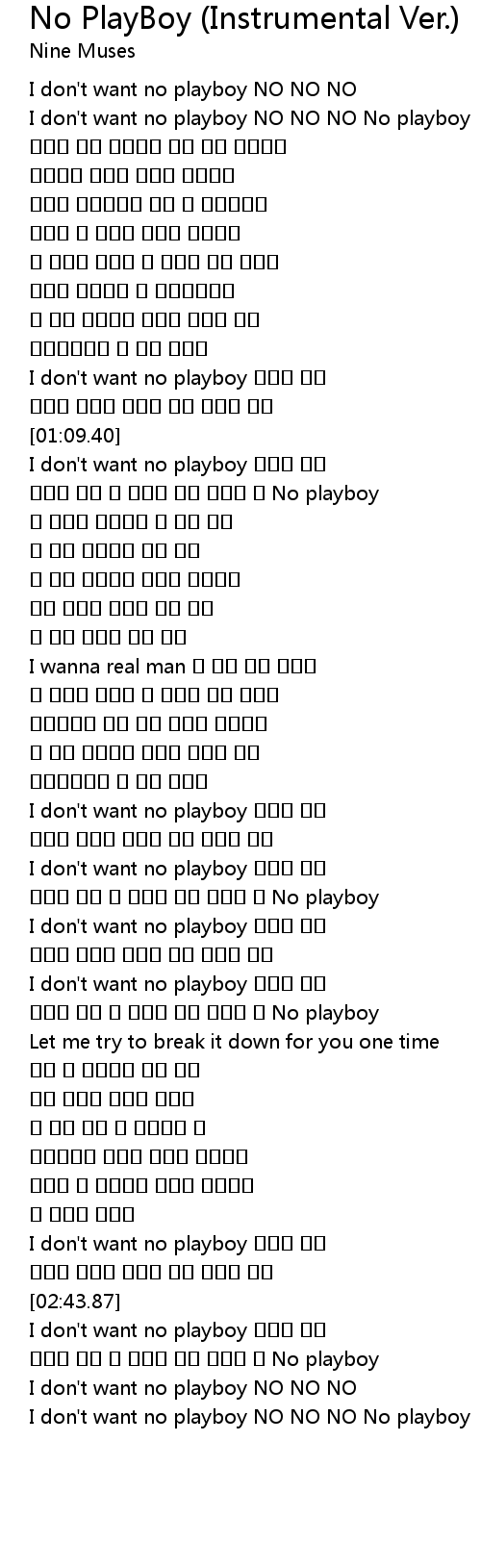 | [01:49.71] | I don't want no playboy 날라린 싫어 |
