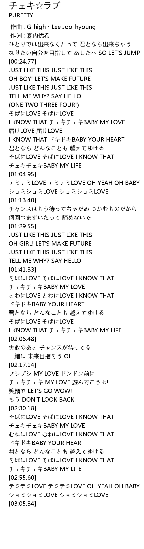 | [01:44.98] | チェキチェキBABY MY LOVE |