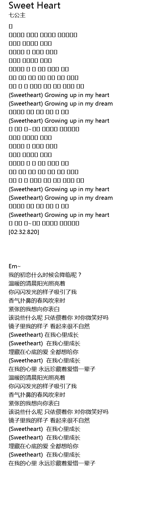 | [02:20.350] | Sweetheart Growing up in my heart |