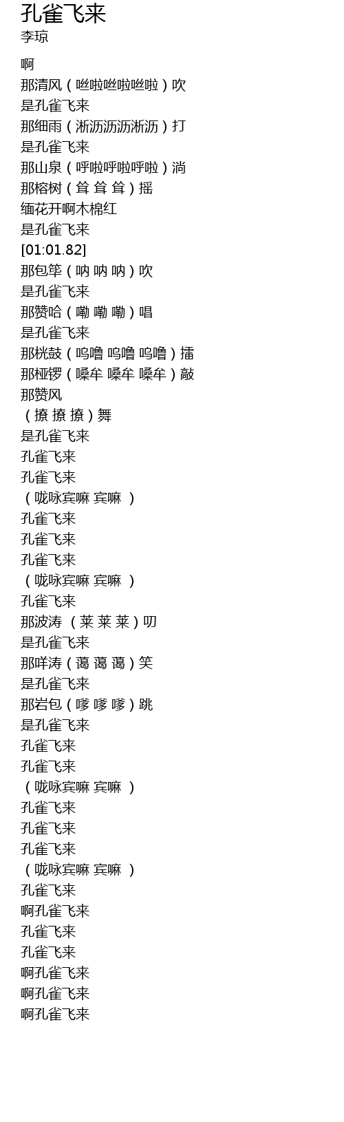 | [01:51.91] | 孔雀飞来 |