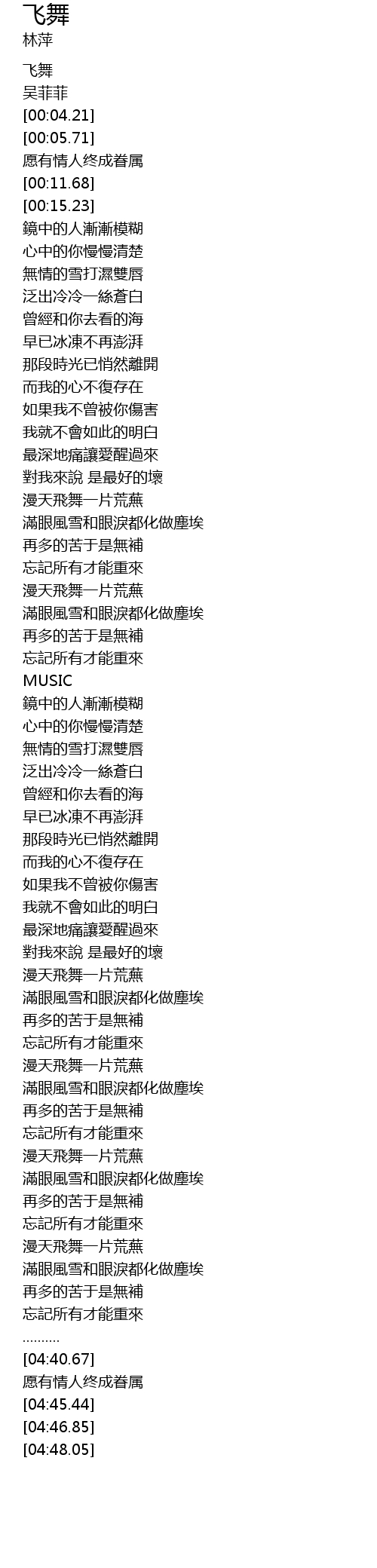 | [00:00.63] | 飞舞 |