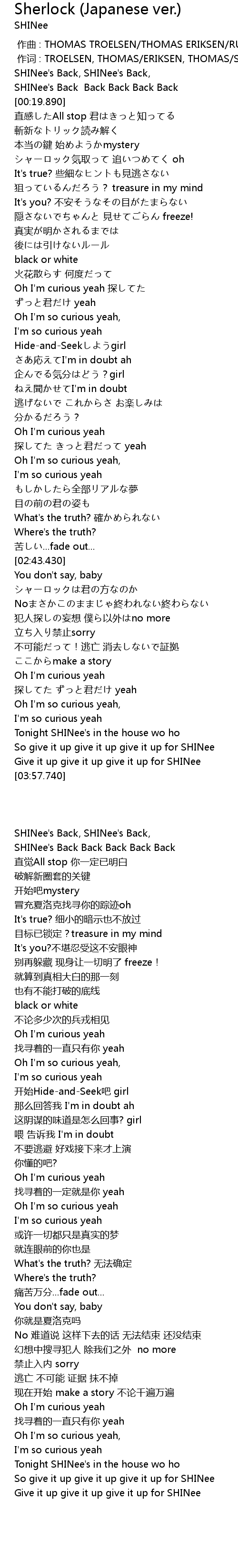 | [00:15.890] | SHINee' s Back Back Back Back Back |
