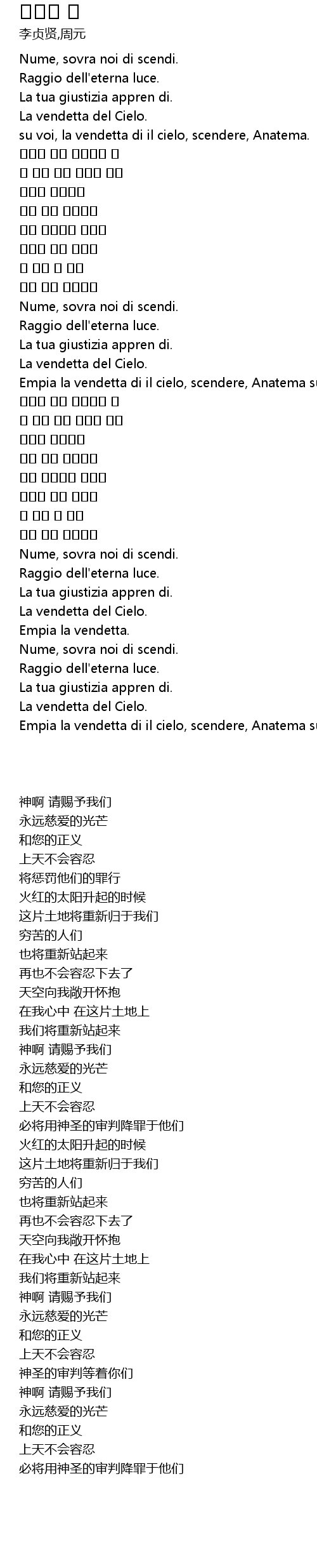 | [01:13.18] | Empia la vendetta di il cielo, scendere, Anatema su voi. |