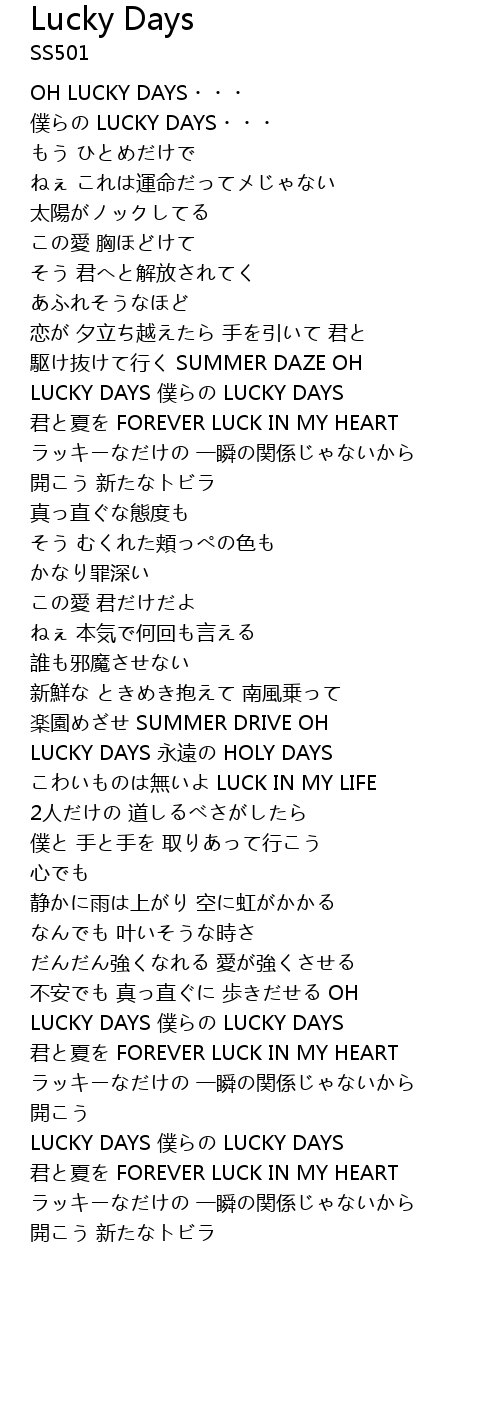 | Song | Lucky Days |
