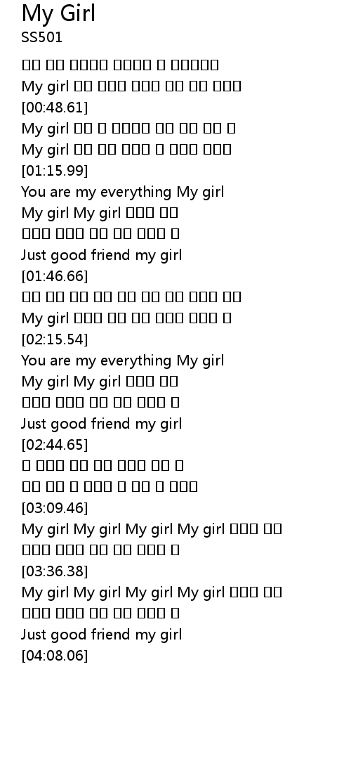| [03:36.71] | My girl My girl My girl My girl 어느새 내겐 |