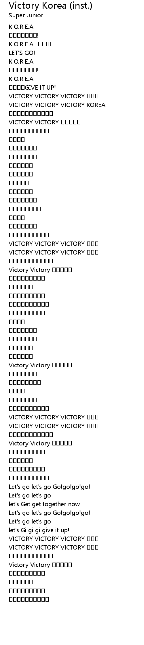 | [00:23.42] | VICTORY VICTORY VICTORY 꼬레아 |