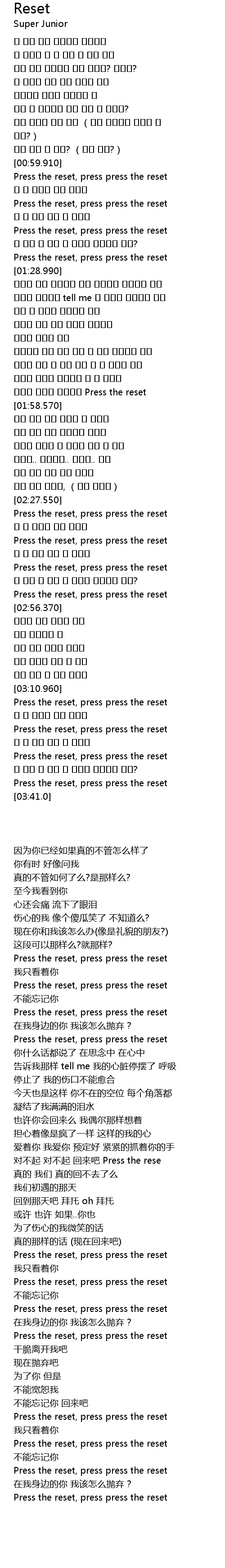 | [01:54.729] | 미안해 미안해 돌아와줘 Press the reset |