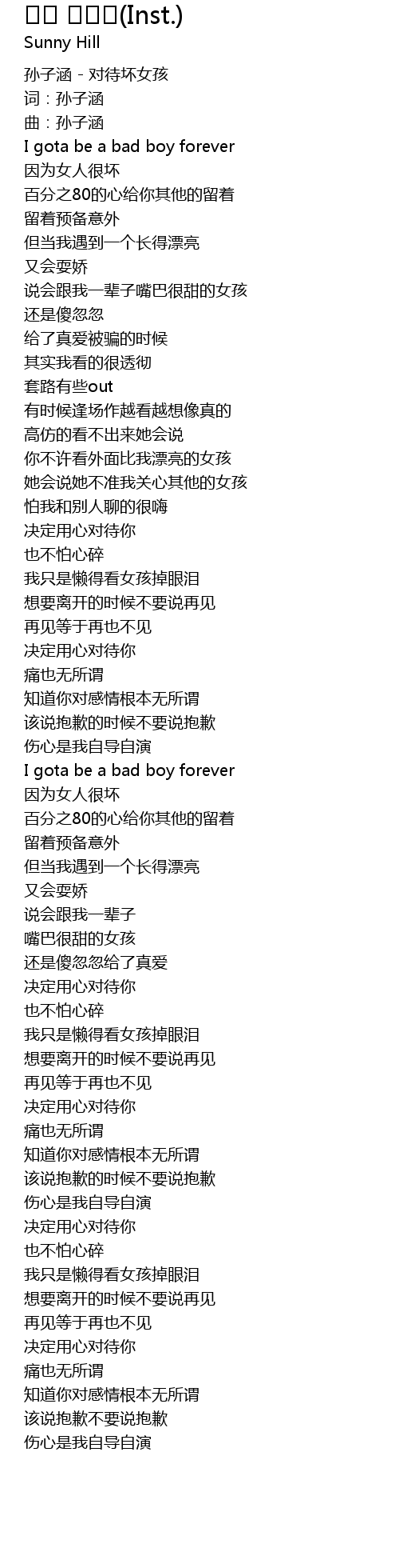 | [00:00.600] | 孙子涵 - 对待坏女孩 |