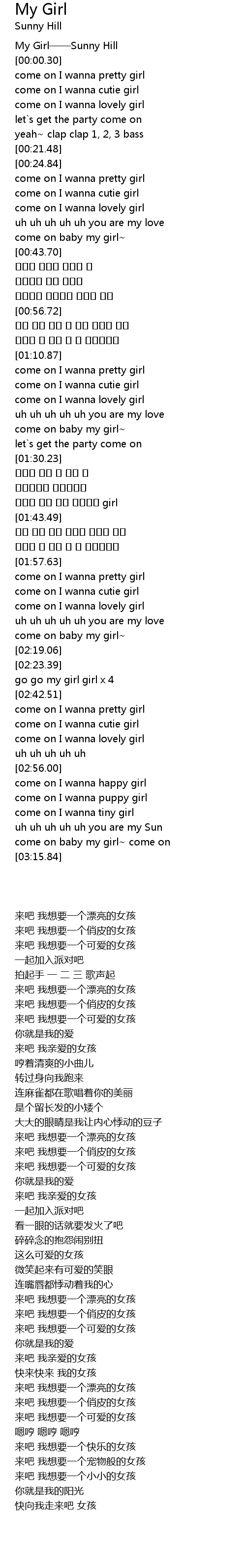 | [00:00.15] | My Girl Sunny Hill |