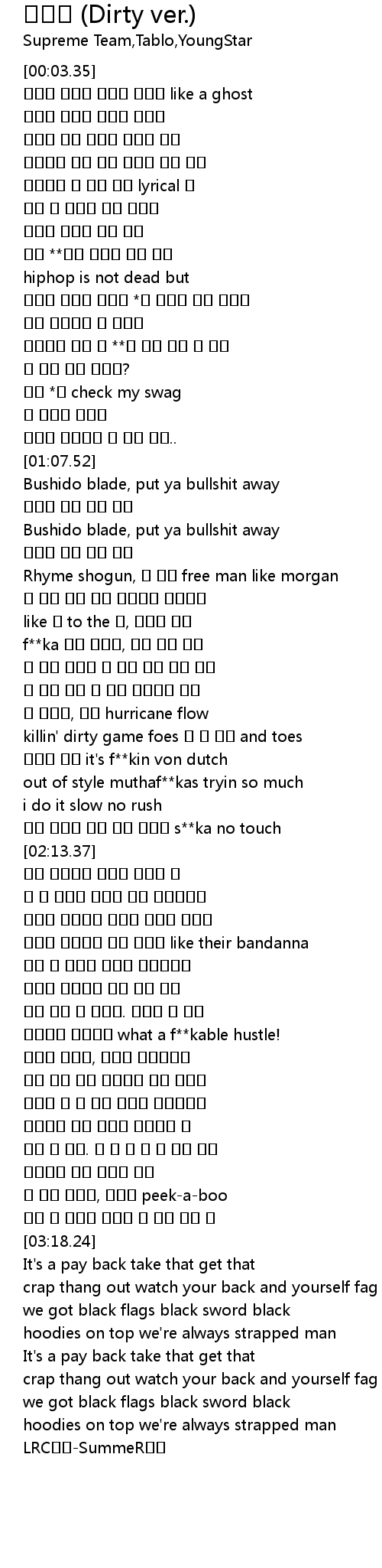 | [03:05.50] | 난 힙합 시노비, 잘가라 peek-a-boo |