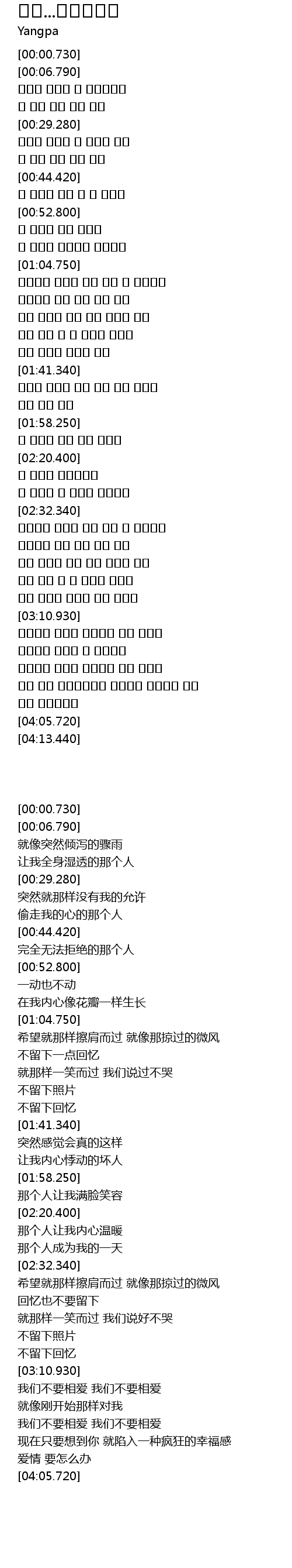 | [03:40.160] | 사랑하지 말아요 사랑하지 않게 해줘요 |