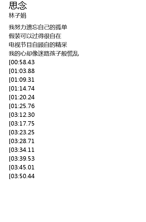 | [02:55.64][01:14.74] | 突然发现回忆早已停摆 |