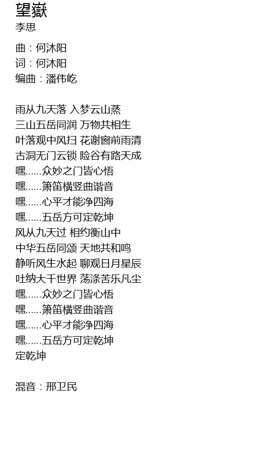 | feng cong jiu tian guo xiang yue heng shan zhong | |